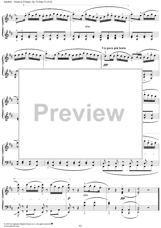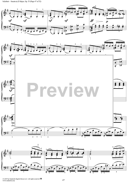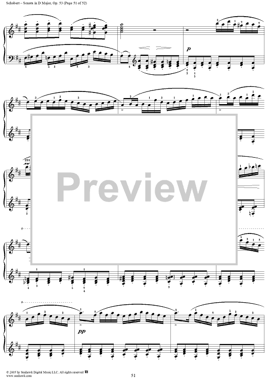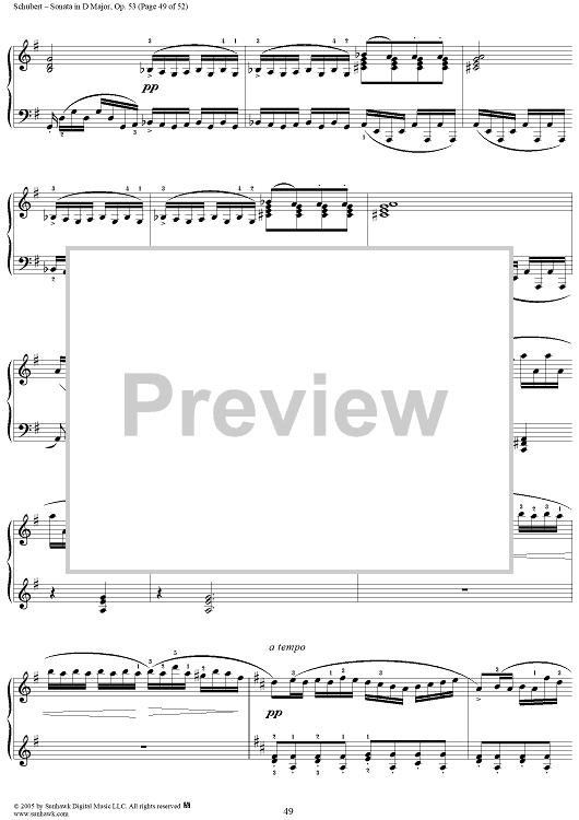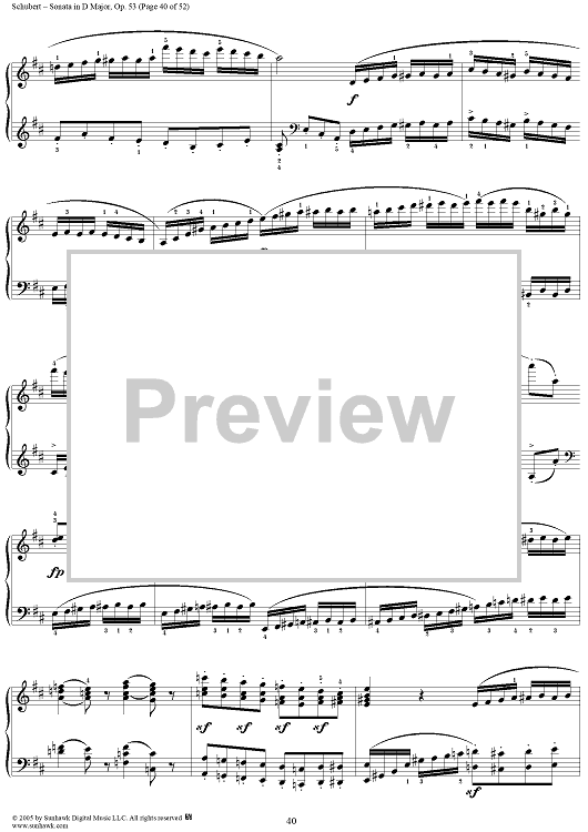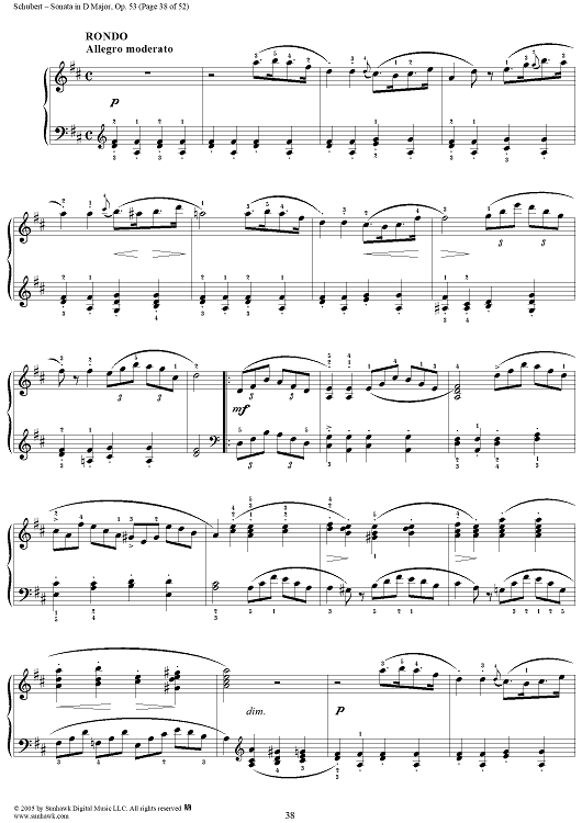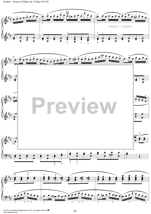 Digital Sheet Music for Piano Sonata No. 17 in D major, Op. 53, D850, Mvmt. 4 by Franz Schubert scored for Piano Solo; id:313367