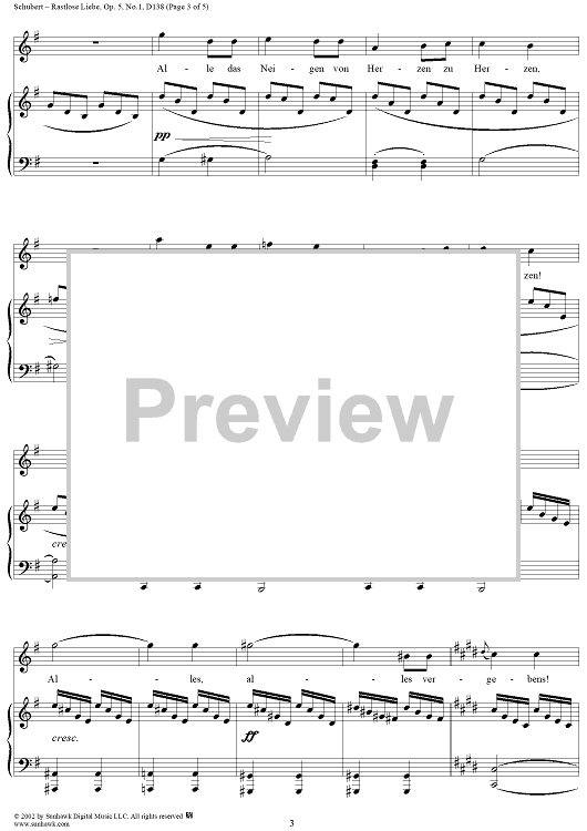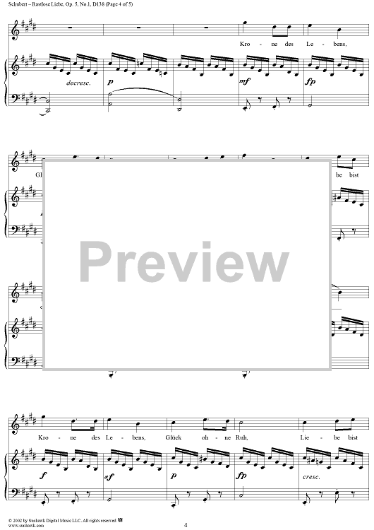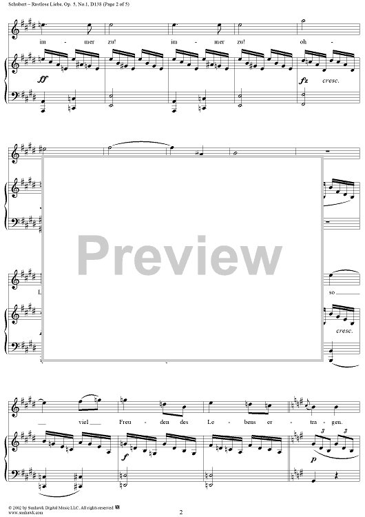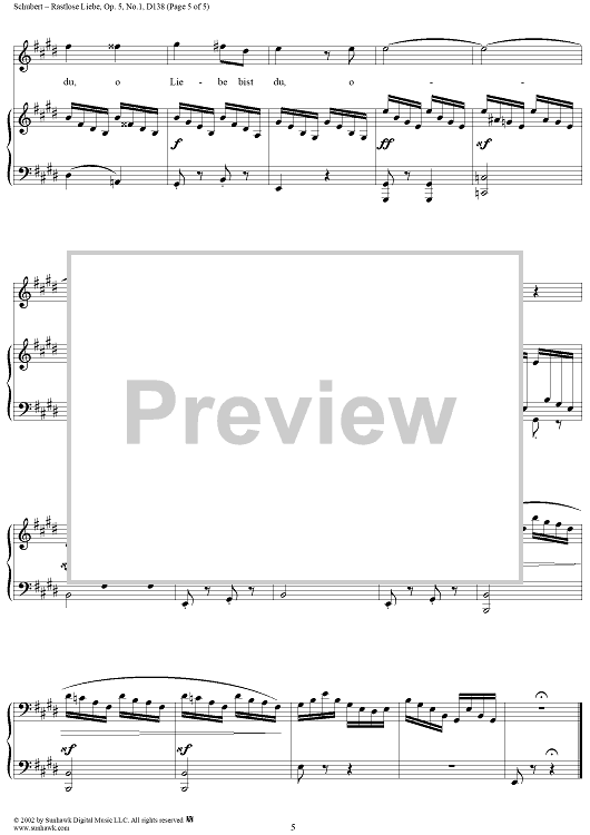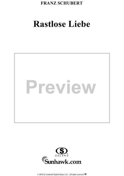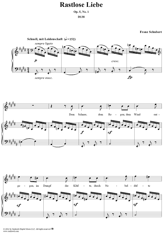 Digital Sheet Music for Rastlose Liebe, Op.5, No.1, D138 by Franz Schubert scored for Voice/Piano; id:256880