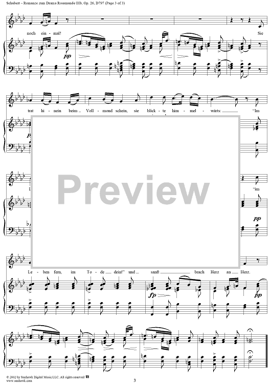 Digital Sheet Music for Romanze zum Drama Rosamunde IIIb, Op.26, D797 by Franz Schubert scored for Voice/Piano; id:256884