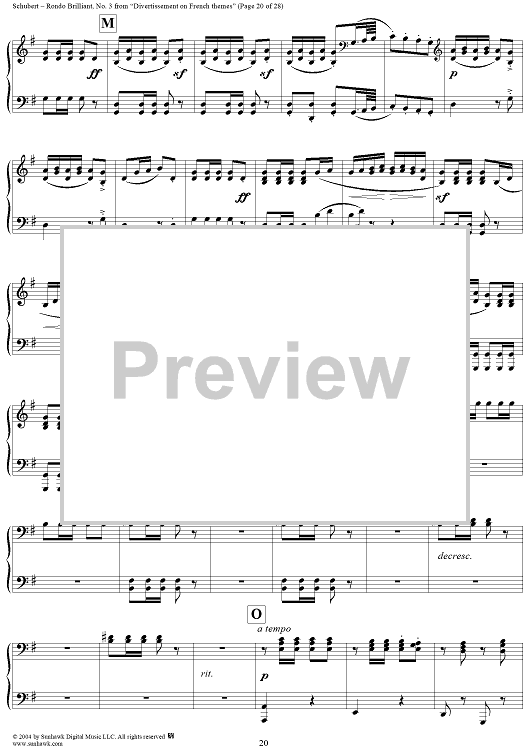 Digital Sheet Music for Rondo Brilliant, No. 3 from "Divertissement on French themes" by Franz Schubert scored for 1 Piano, 4 Hands; id:297991