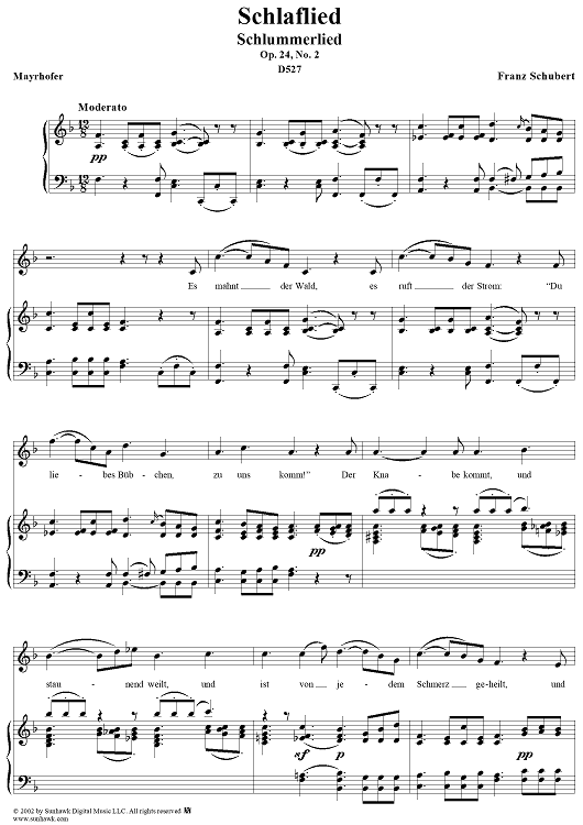 Digital Sheet Music for Schlaflied (Schlummerlied), Op.24, No.2, D527 by Franz Schubert scored for Voice/Piano; id:256903