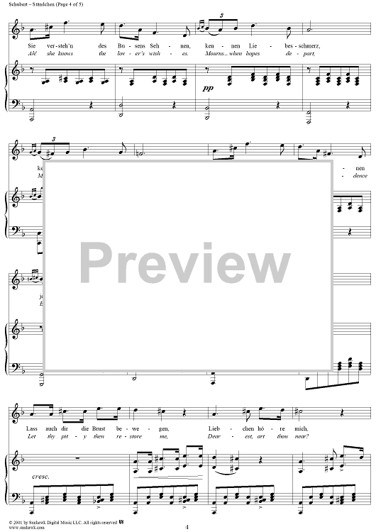 Digital Sheet Music for Schwanengesang, D957, No. 4: Ständchen (Serenade) by Franz Schubert, Ludwig Rellstab scored for Voice/Piano; id:256923