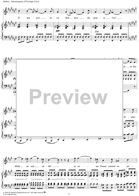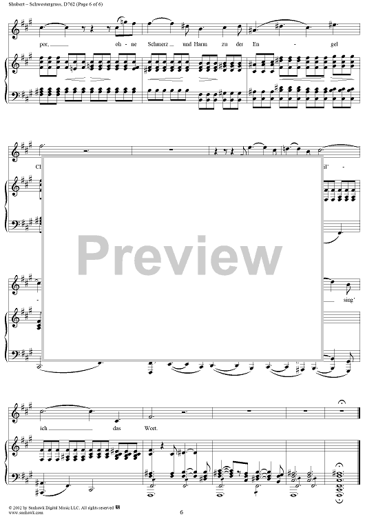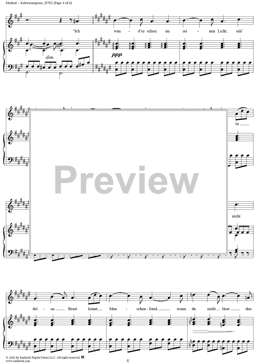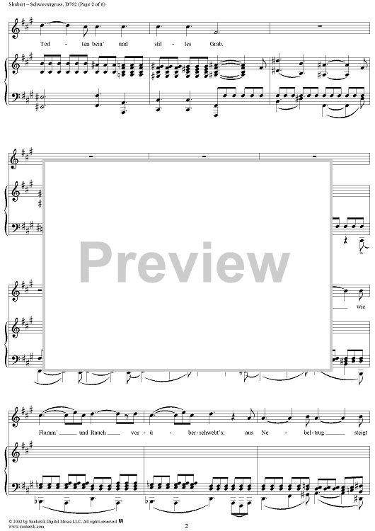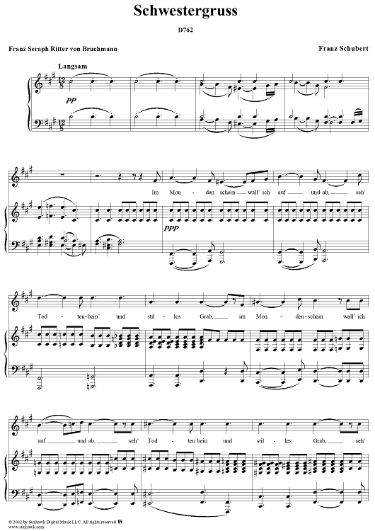 Digital Sheet Music for Schwestergruss, D762 by Franz Schubert scored for Voice/Piano; id:256928