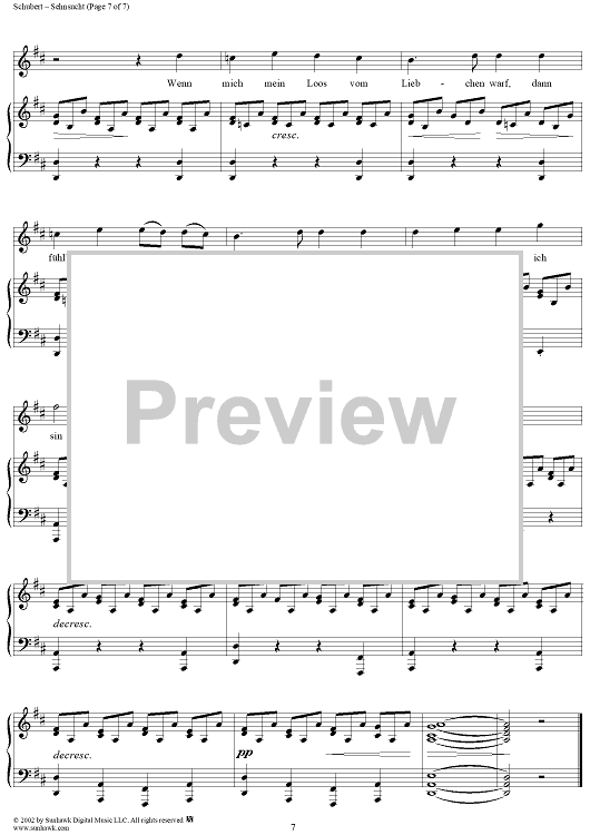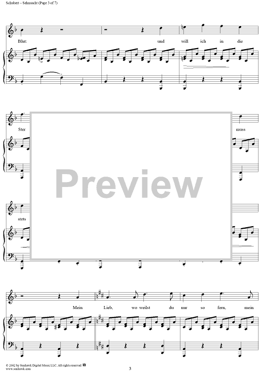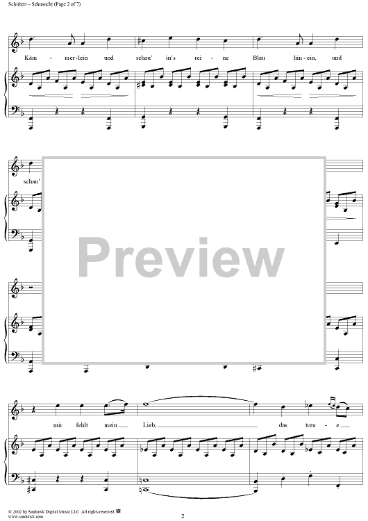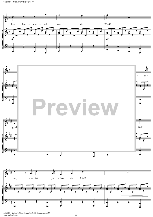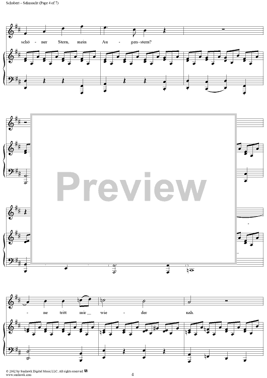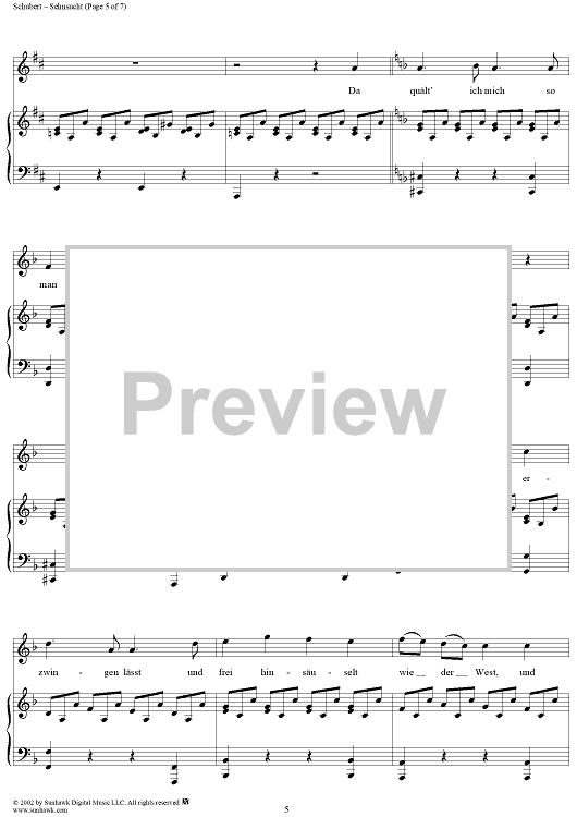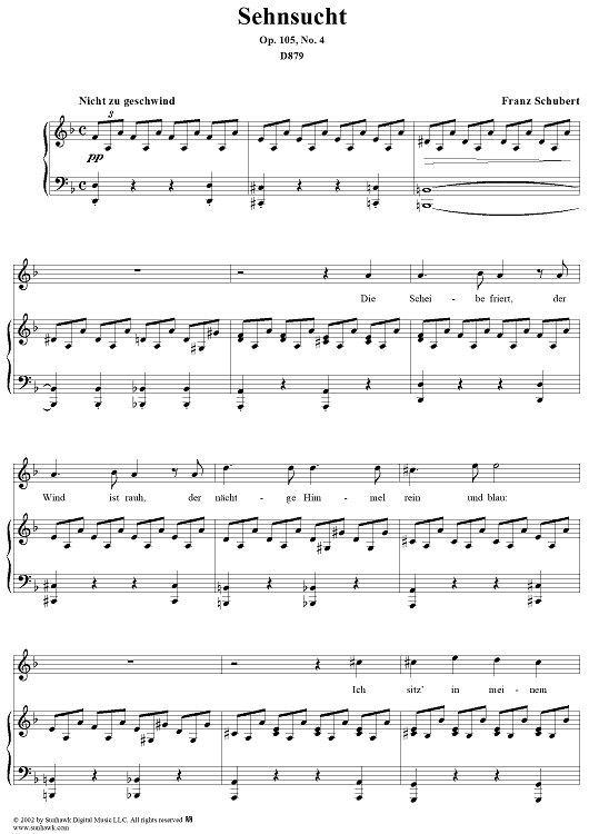 Digital Sheet Music for Sehnsucht, Op. 105, No. 4, D879 by Franz Schubert scored for Voice/Piano; id:256912