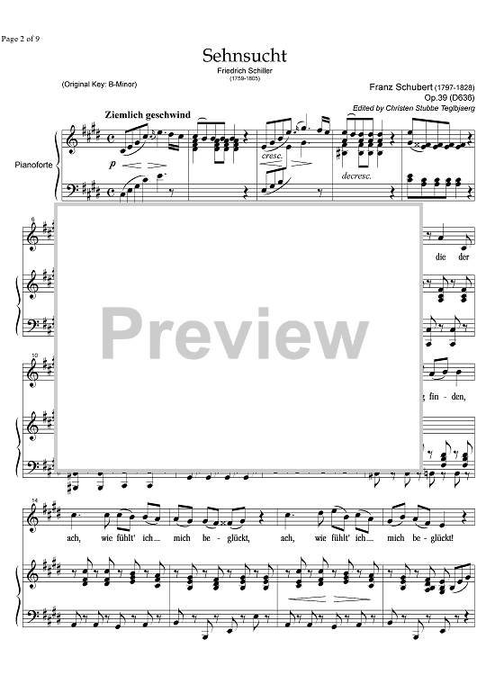 Digital Sheet Music for Sehnsucht Op.39 D636 by , Franz Schubert scored for Soprano or Tenor/Piano; id:338164