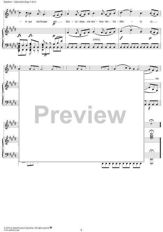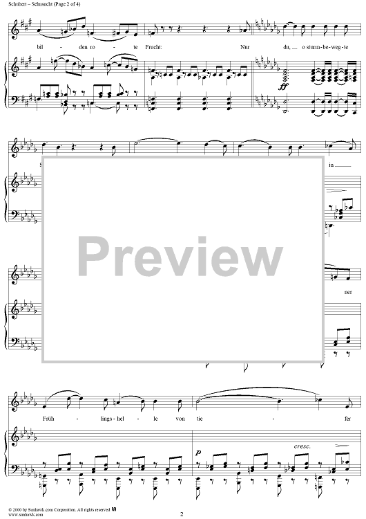 Digital Sheet Music for Sehnsucht, Op.8, No.2, D516 by Franz Schubert scored for Voice/Piano; id:256930
