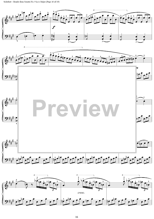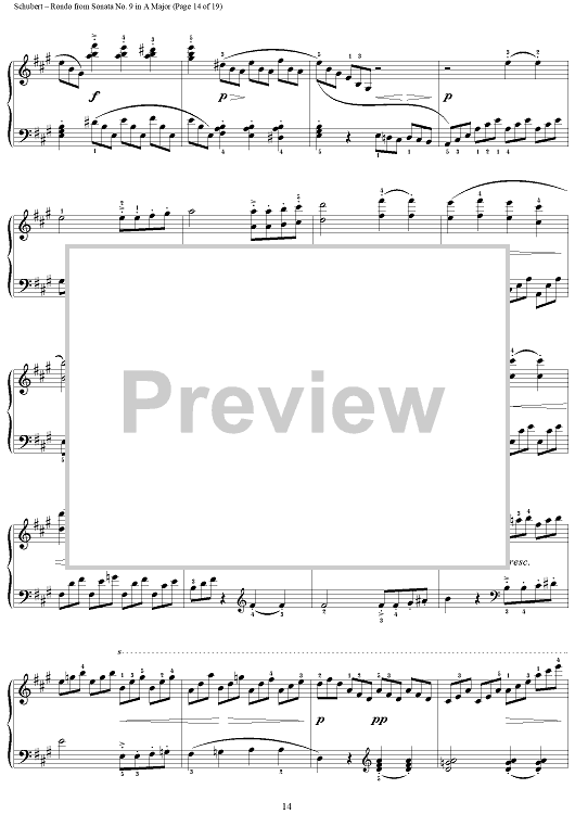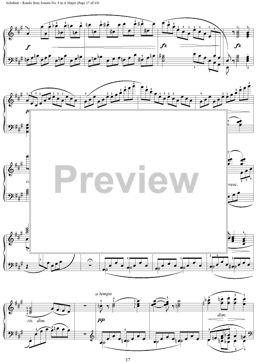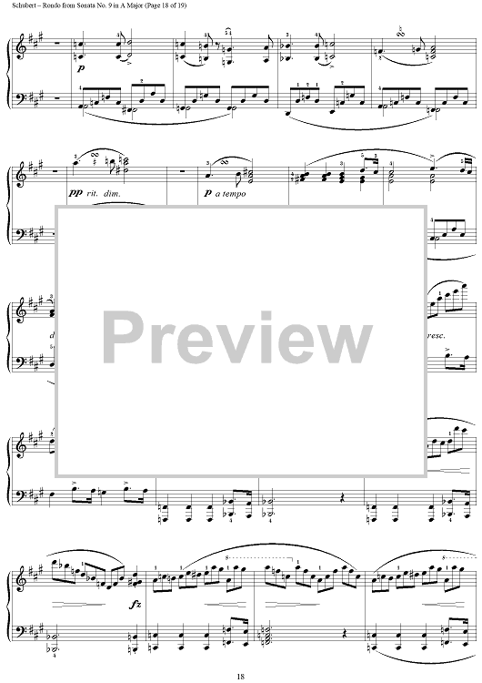 Digital Sheet Music for Sonata in A Major, Op. Posth., Movement 3: Rondo by Franz Schubert scored for Piano Solo; id:256875