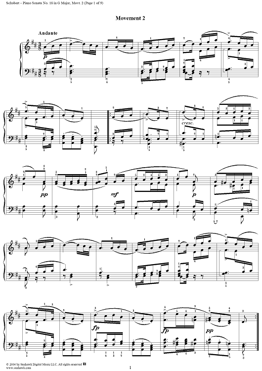 Digital Sheet Music for Sonata No. 18 in G Major ("Fantasy"), Op. 78, Movement 2: Andante by Franz Schubert scored for Piano Solo; id:295980