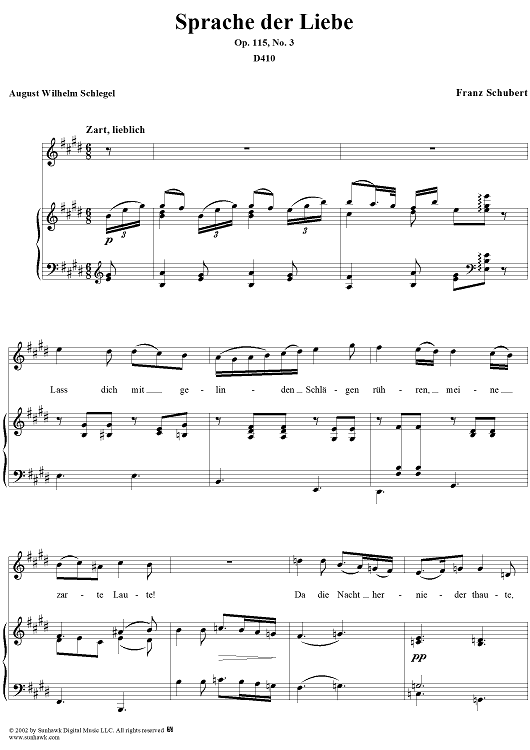 Digital Sheet Music for Sprache der Liebe, Op. 115, No. 3, D410 by Franz Schubert scored for Voice/Piano; id:256934