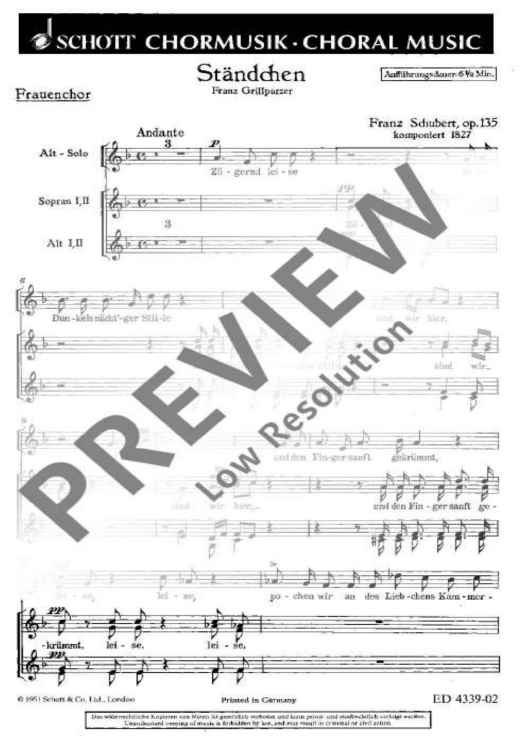 Digital Sheet Music for Ständchen - Choral Score by Franz Schubert scored for Female Choir (ssaa) Or Men's Choir (ttbb) With Alto- Or Baritone-solo And Piano; id:473143