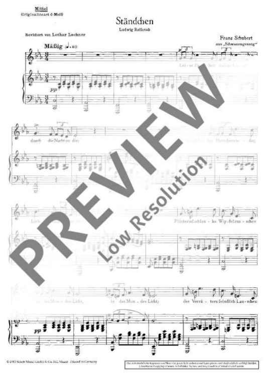 Digital Sheet Music for Ständchen by Franz Schubert scored for Medium Voice And Piano; id:474746