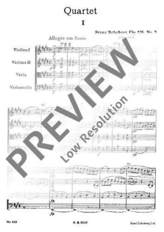 "String Quartet E major - Full Score" Sheet Music by Franz Schubert