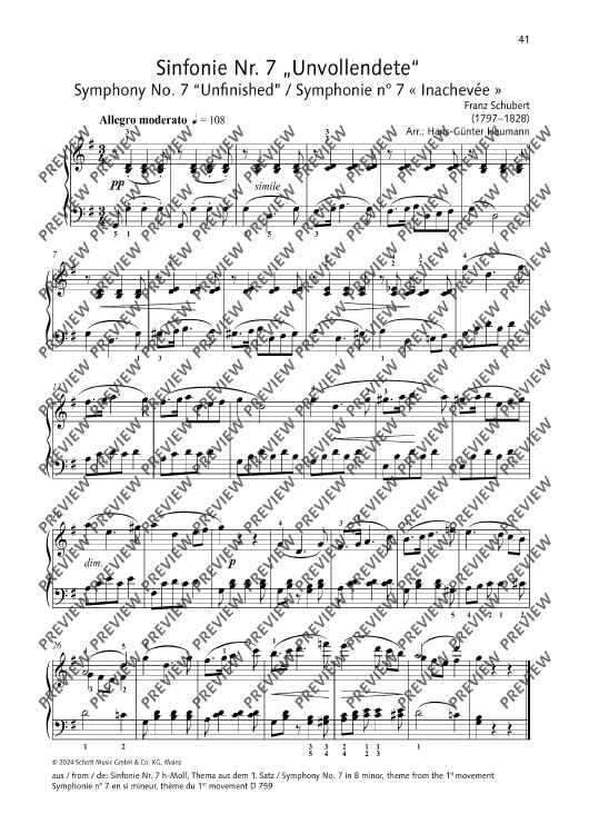 Digital Sheet Music for Symphony No. 7 “Unfinished” by Franz Schubert, Hans-Guenter Heumann scored for Piano; id:504155