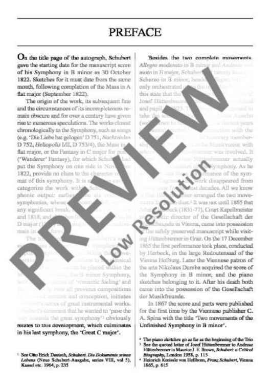 "Symphony No. 8 B minor - Full Score" Sheet Music by Franz Schubert