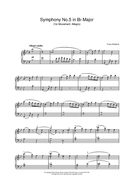 "Symphony No.5 in Bb Major - 1st Movement: Allegro" Sheet Music by Franz Schubert