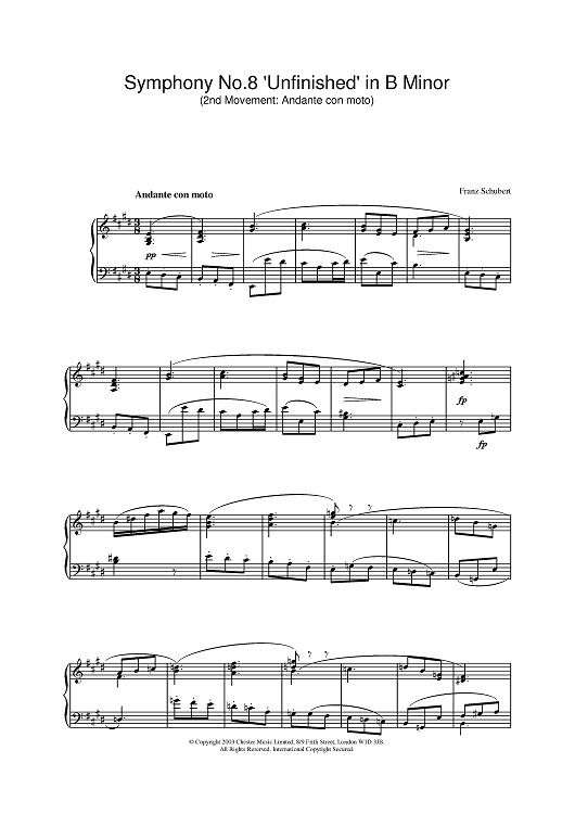 Digital Sheet Music for Symphony No.8 'Unfinished' in B Minor - 2nd Movement: Andante con moto by Franz Schubert scored for Piano; id:376830