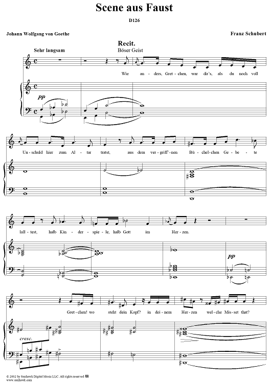 Digital Sheet Music for Szene aus Faust, D126 by Franz Schubert scored for Voice/Piano; id:256901