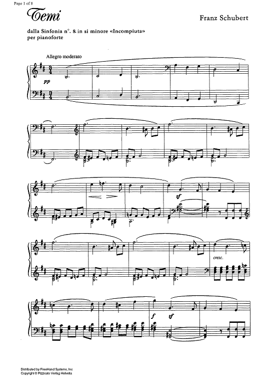 Digital Sheet Music for Themes from Symphony No. 8 b minor Incompiuta by Franz Schubert scored for Piano Solo; id:329083