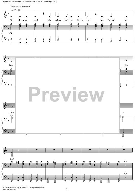 Digital Sheet Music for Tod und das Mädchen, Op.7, No.3, D531 by Franz Schubert scored for Voice/Piano; id:256537