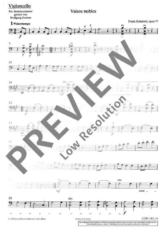 Digital Sheet Music for Valses nobles - Cello by Franz Schubert scored for String Orchestra; id:482088