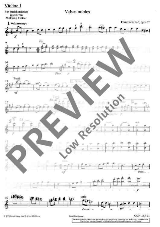 Digital Sheet Music for Valses nobles - Violin I by Franz Schubert scored for String Orchestra; id:482078