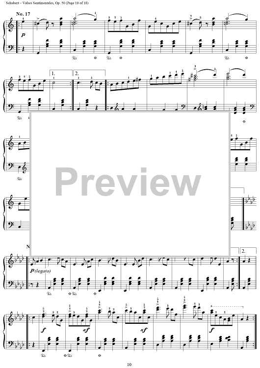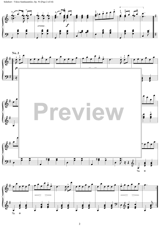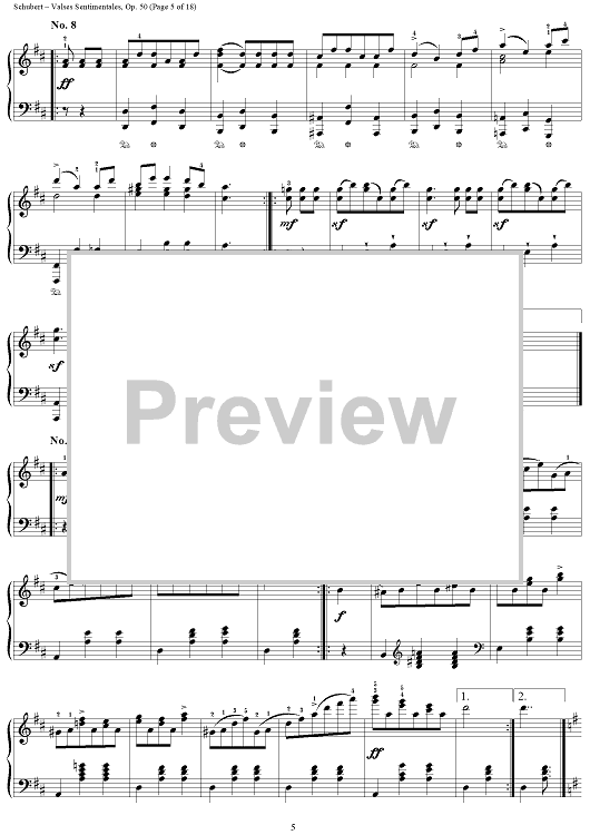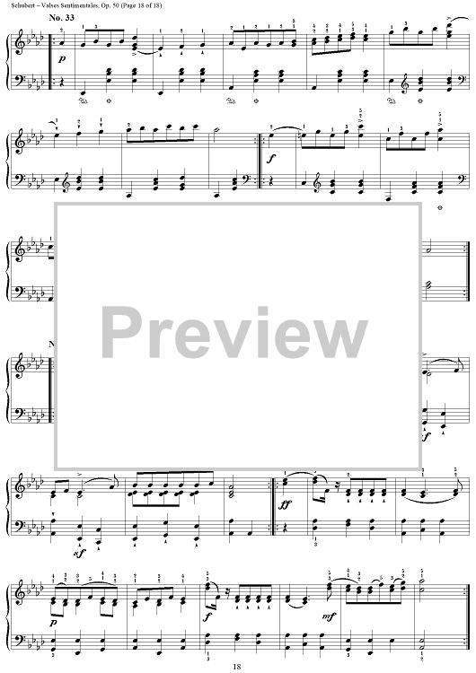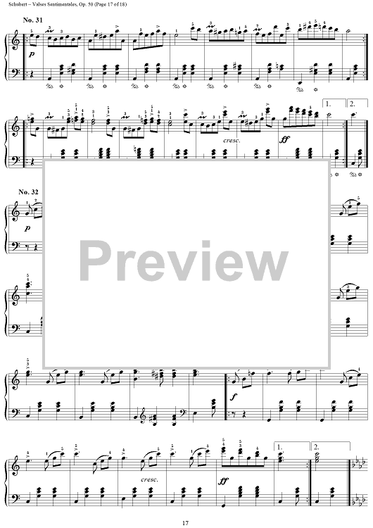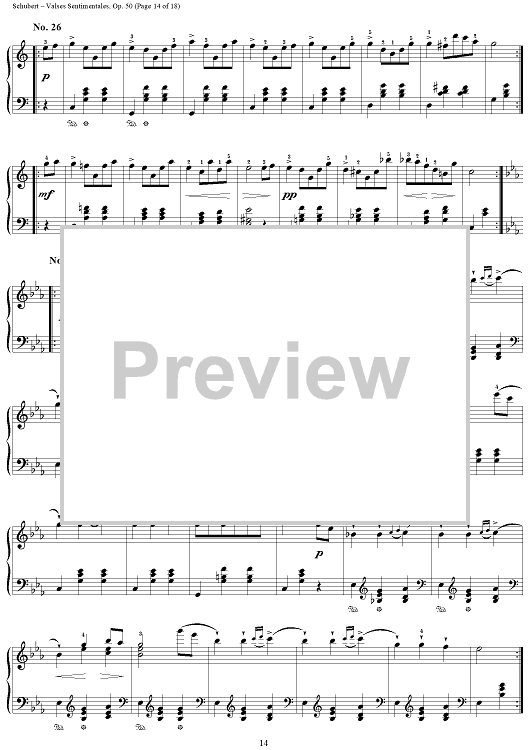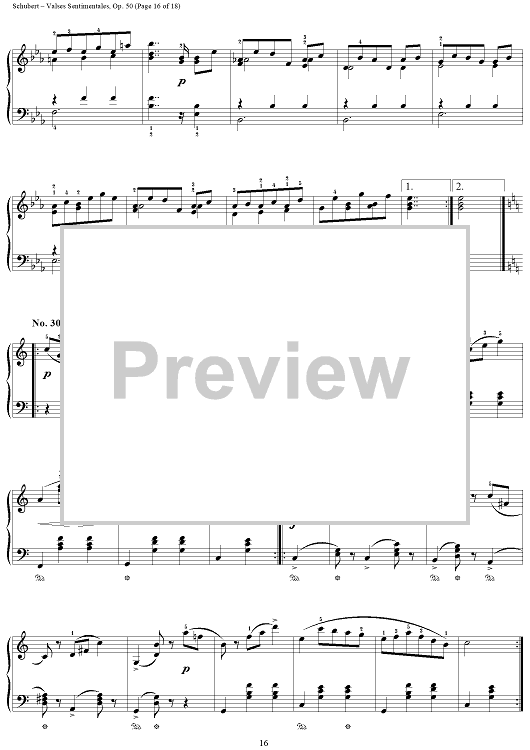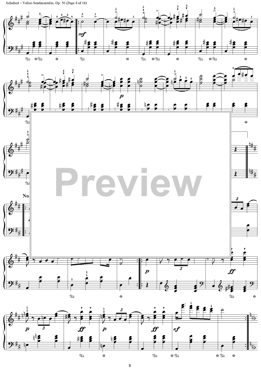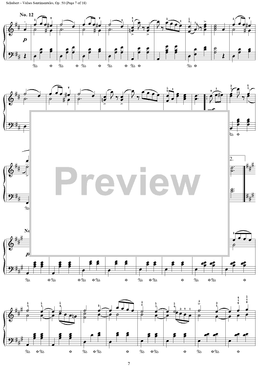 Digital Sheet Music for Valses Sentimentales, Op. 50 by Franz Schubert scored for Piano Solo; id:256837