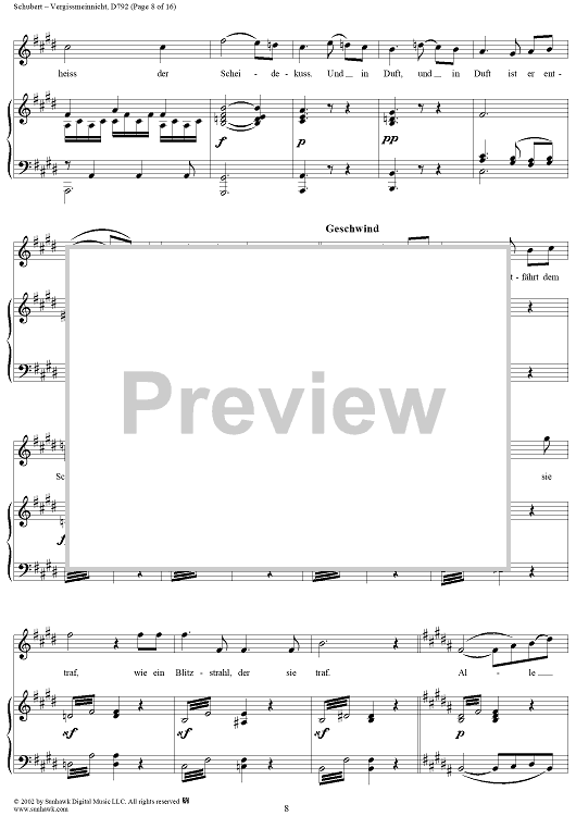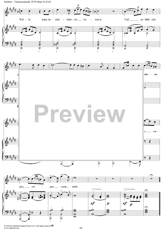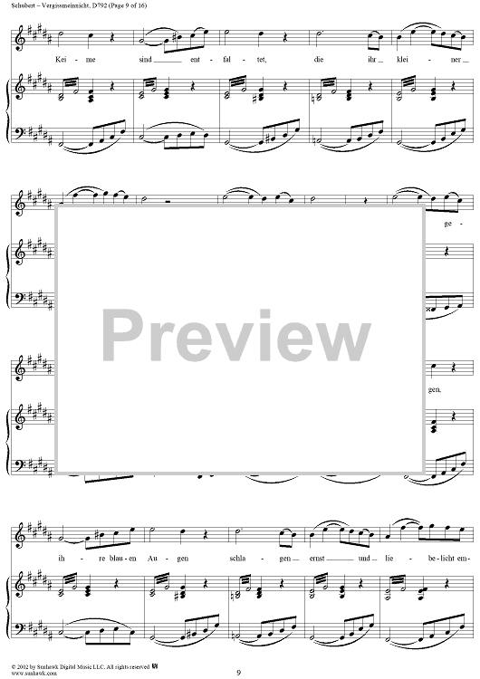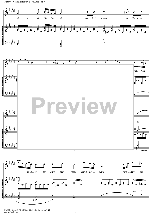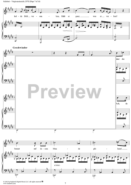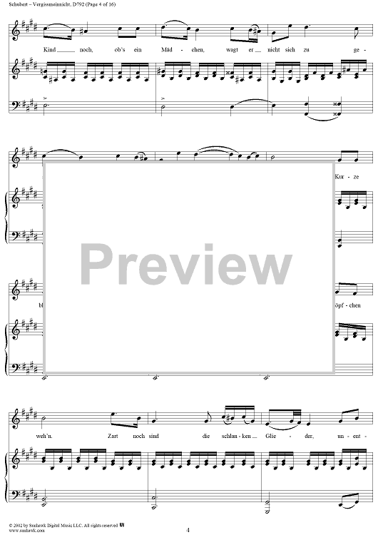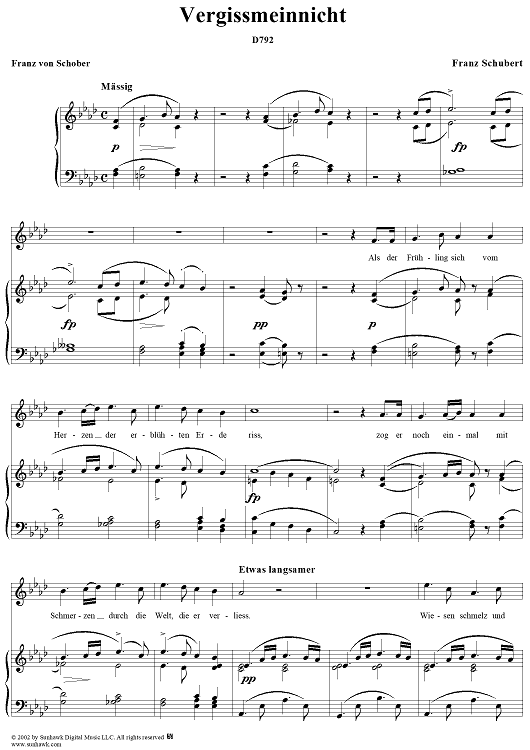 Digital Sheet Music for Vergissmeinnicht, D792 by Franz Schubert scored for Voice/Piano; id:256648