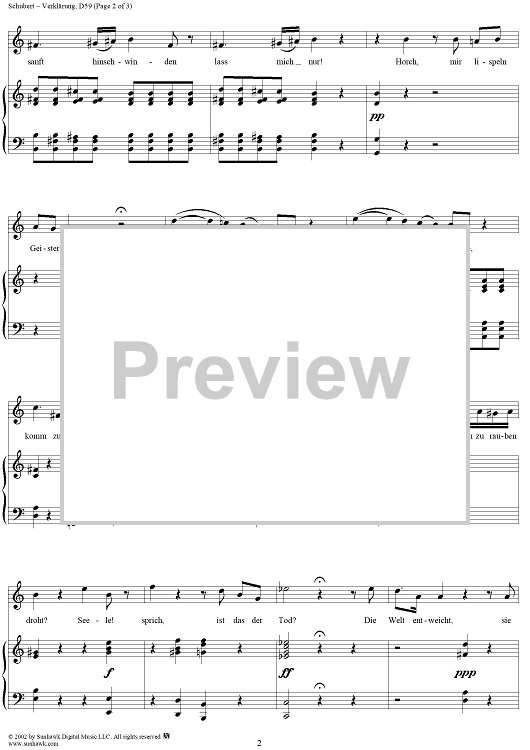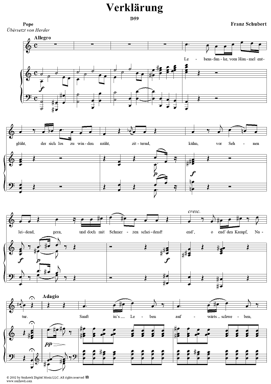 Digital Sheet Music for Verklärung, D59 by Franz Schubert scored for Voice/Piano; id:256649