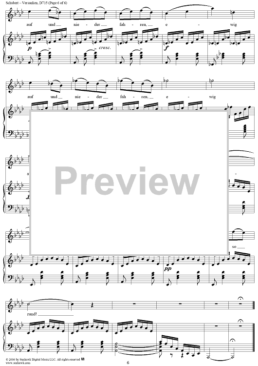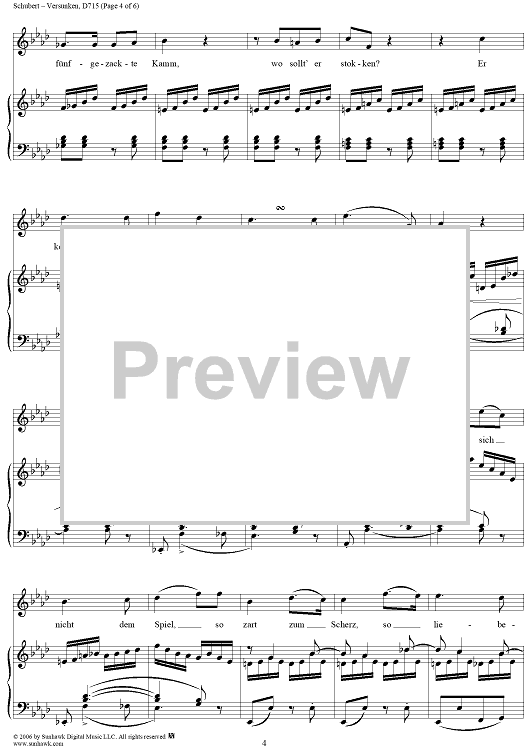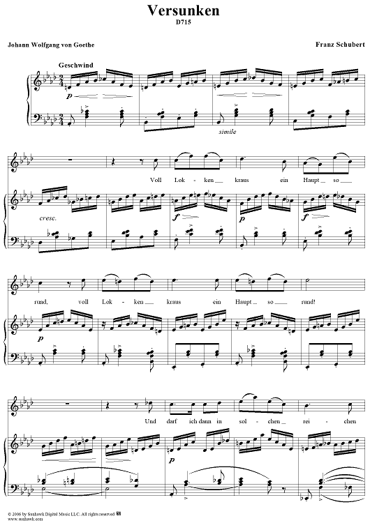 Digital Sheet Music for Versunken by Johann Wolfgang von Goethe, Franz Schubert scored for Voice/Piano; id:318265