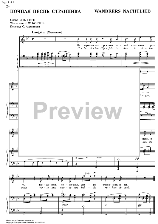 Digital Sheet Music for Wandrers Nachtlied II Op.96 No.3 by Franz Schubert scored for Soprano or Tenor /Piano; id:337198