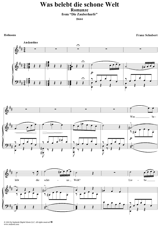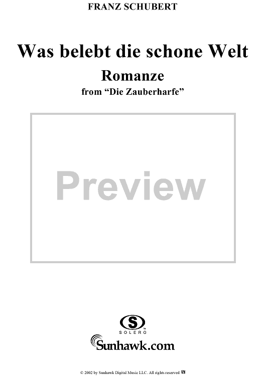 "Was belebt die schöne Welt, (Romanz) No. 9 aus dem Melodram: Die Zauberharfe, D644" Sheet Music by Franz Schubert
