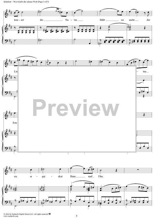 Digital Sheet Music for Was belebt die schöne Welt, (Romanz) No. 9 aus dem Melodram: Die Zauberharfe, D644 by Franz Schubert scored for Voice/Piano; id:257037