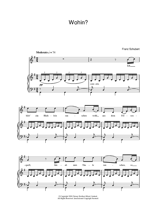 Digital Sheet Music for Wohin by Franz Schubert scored for Piano/Vocal/Chords; id:389335