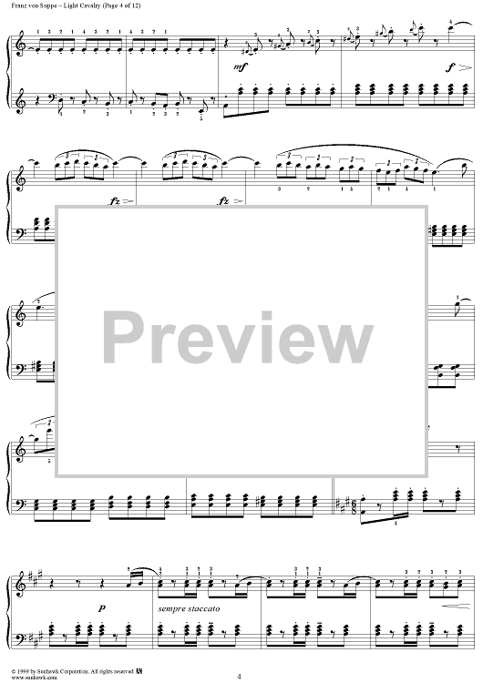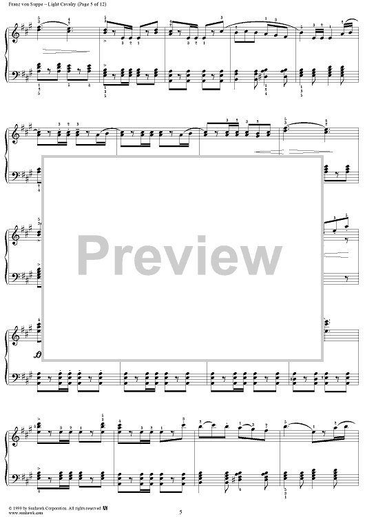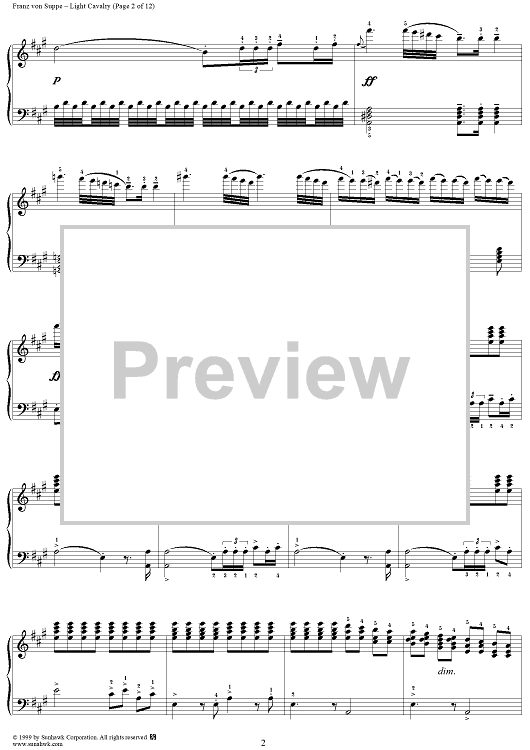 Digital Sheet Music for Light Cavalry Overture (Arranged for Piano) by Franz Von Suppe scored for Piano Solo; id:118418