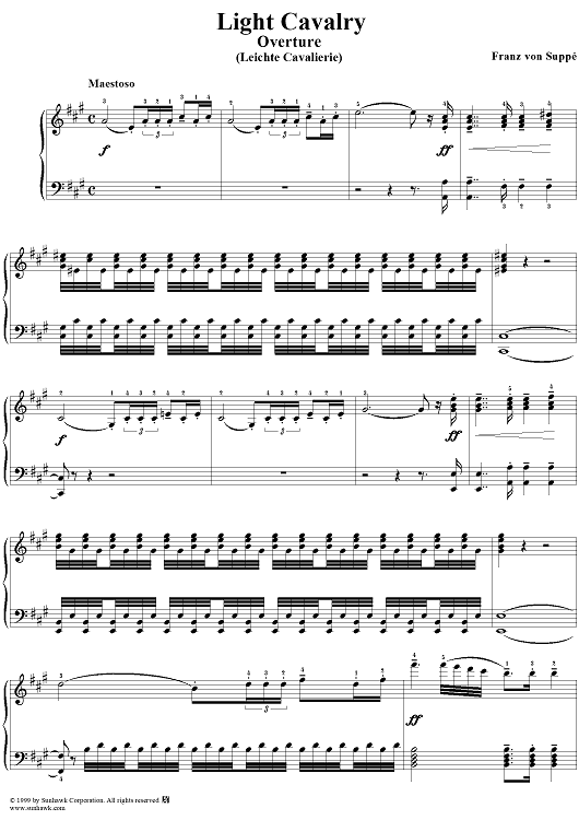 "Light Cavalry Overture (Arranged for Piano)" Sheet Music by Franz Von Suppe