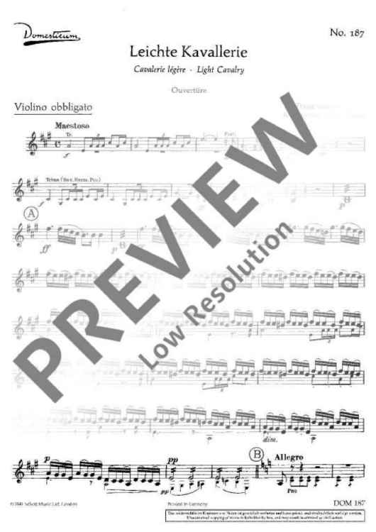 "Light Cavalry - Violin Obligat" Sheet Music by Franz Von Suppe