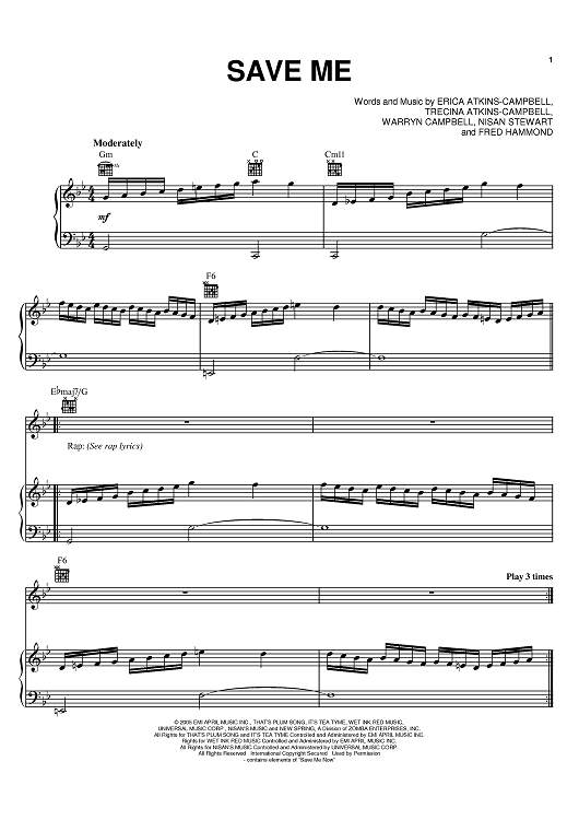 Digital Sheet Music for Save Me by Fred Hammond, Mary Mary, Nisan Stewart, Erica Atkins-Campbell, Trecina Atkins-Campbell, Warryn Campbell scored for Piano/Vocal/Chords; id:388931