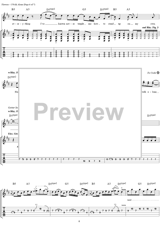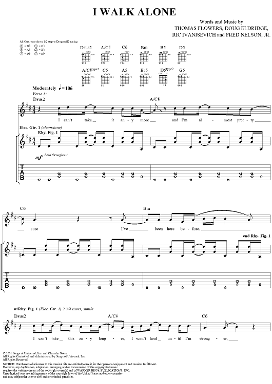 Digital Sheet Music for I Walk Alone by Oleander, Ric Ivanisevich, Thomas Flowers, Doug Eldridge, Fred Nelson, Jr. scored for Guitar Tab/Vocal; id:285319