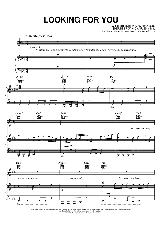 Digital Sheet Music for Looking For You by Kirk Franklin, Sheree Brown, Charles Mims, Patrice Rushen, Fred Washington scored for Piano/Vocal/Chords; id:388850