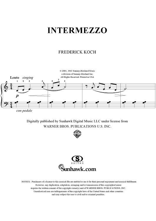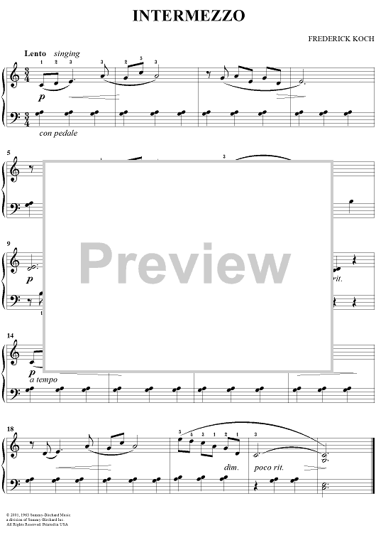 Digital Sheet Music for Intermezzo by Frederick Koch scored for Easy Piano; id:287430