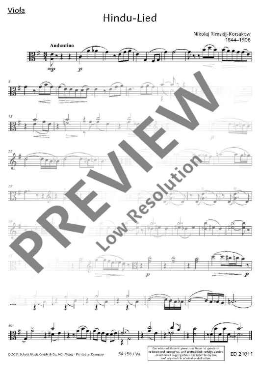 "Hindu Song - Score and Parts" Sheet Music by Nikolai Rimsky-Korsakov