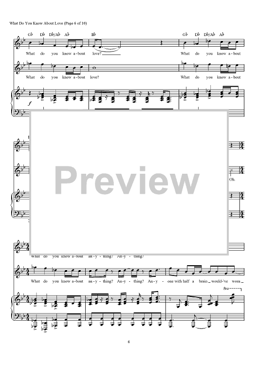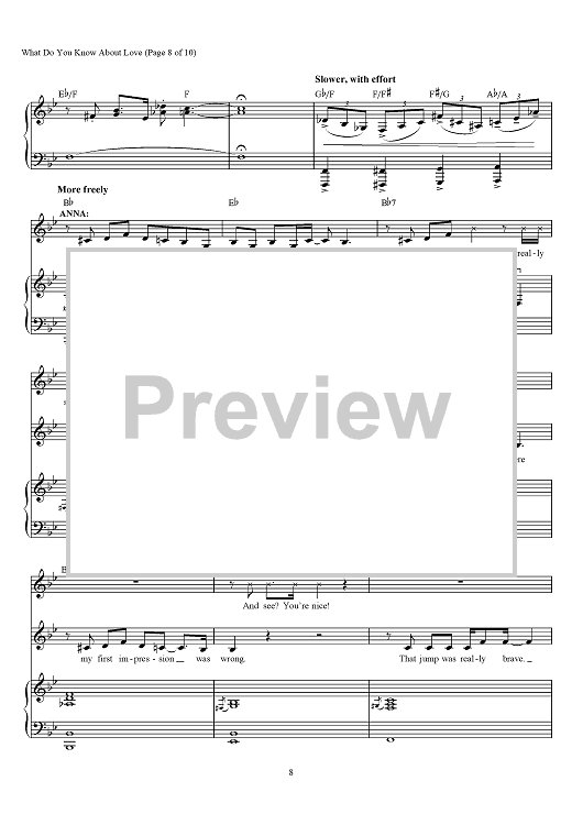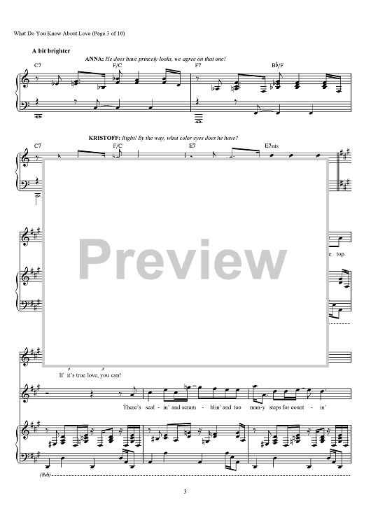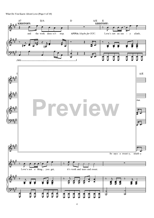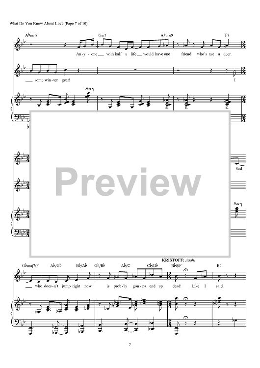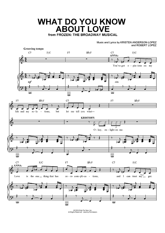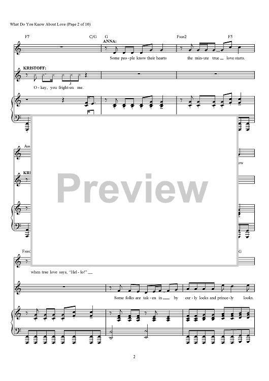 Digital Sheet Music for What Do You Know About Love - from Frozen: The Broadway Musical by Robert Lopez, Kristen Anderson-Lopez scored for Piano/Vocal/Chords; id:466372