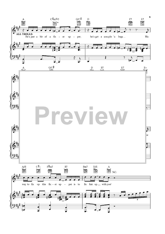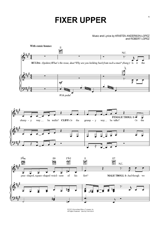 Digital Sheet Music for Fixer Upper by Robert Lopez, Kristen Anderson-Lopez scored for Piano/Vocal/Chords; id:439658
