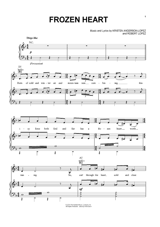 Digital Sheet Music for Frozen Heart by Robert Lopez, Kristen Anderson-Lopez scored for Piano/Vocal/Chords; id:439660