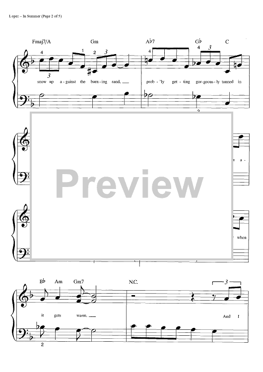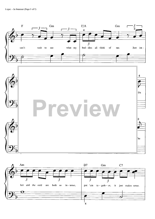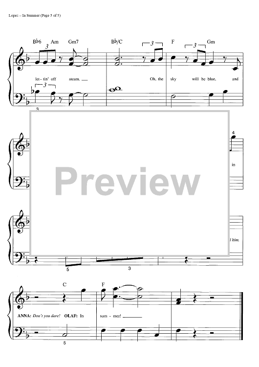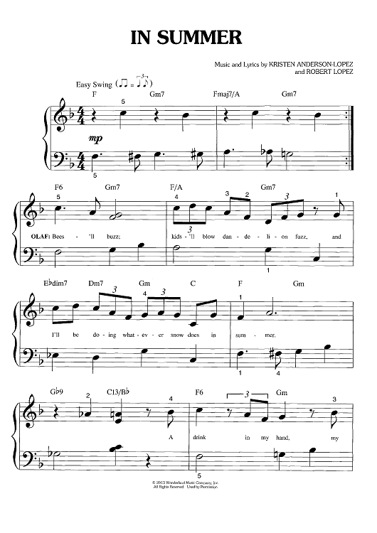 "In Summer" Sheet Music by Robert Lopez