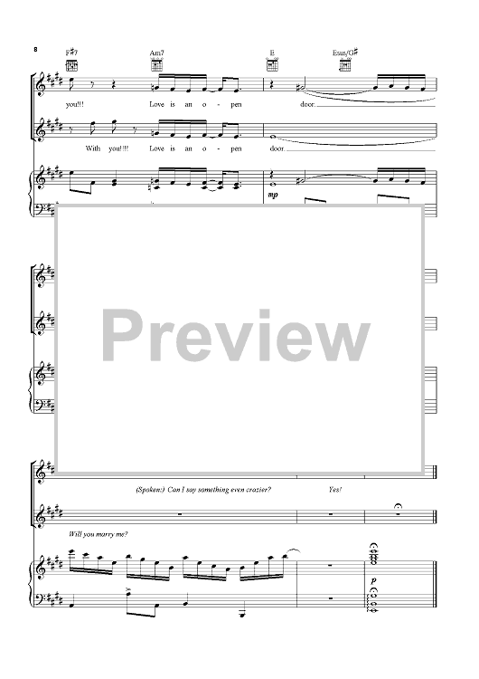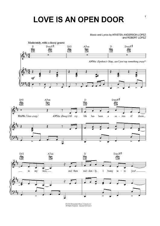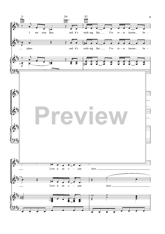 Digital Sheet Music for Love Is An Open Door by Robert Lopez, Kristen Anderson-Lopez scored for Piano/Vocal/Chords; id:439663