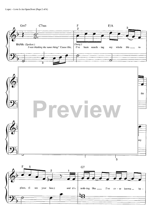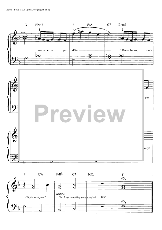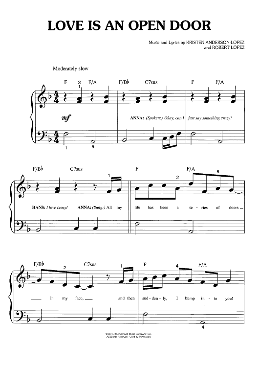 "Love Is An Open Door" Sheet Music by Robert Lopez