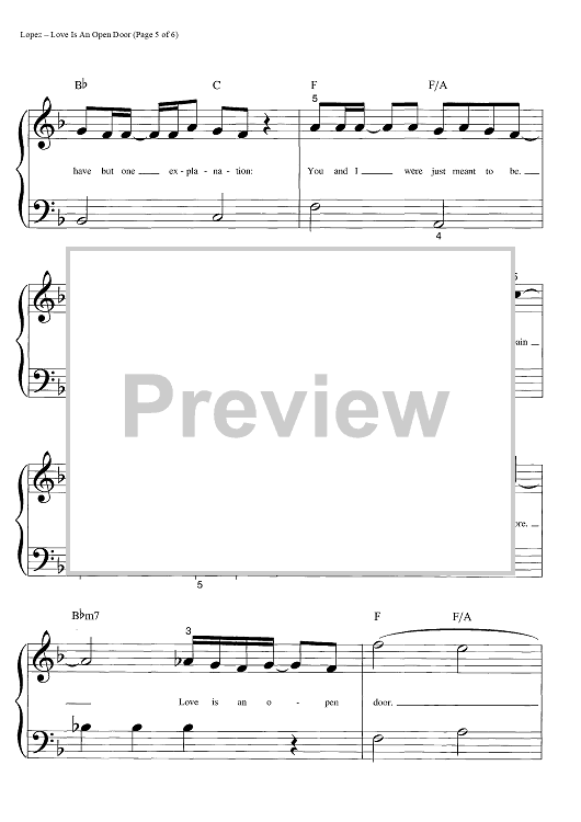 Digital Sheet Music for Love Is An Open Door by Robert Lopez, Kristen Anderson-Lopez scored for Big Note Piano; id:444999