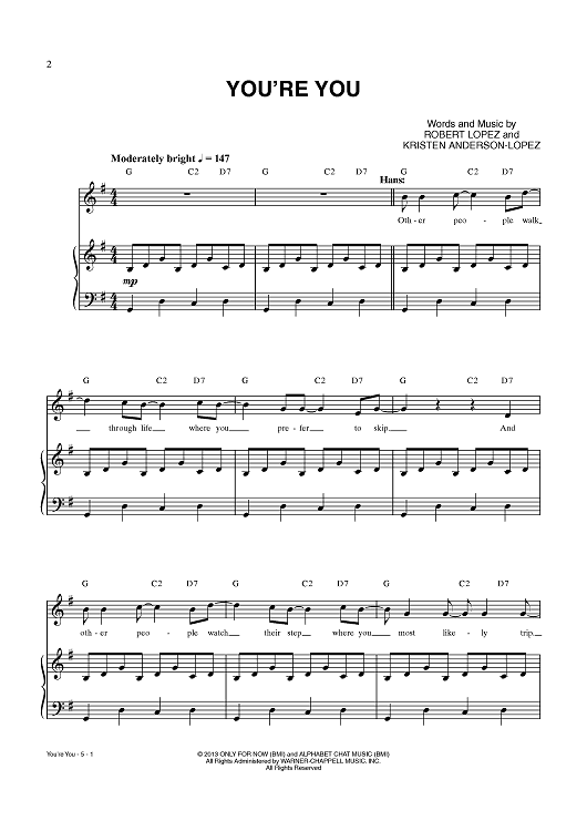 Digital Sheet Music for You're You by Robert Lopez, Kristen Anderson-Lopez scored for Piano/Vocal/Chords; id:438245