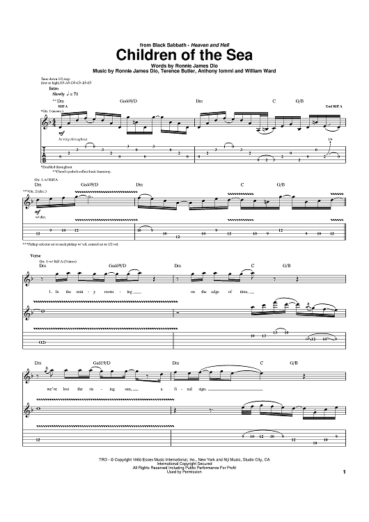 Digital Sheet Music for Children Of The Sea by Bill Ward, Black Sabbath, Geezer Butler, Dio, Ronnie James Dio, Tony Iommi scored for Guitar Tab; id:402396